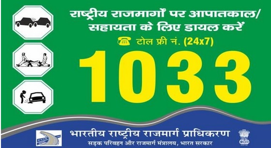 Recognizing the importance of improving safe travel along National Highways and to help NHAI in taking preventive measures & improve maintenance of road and facilitate to serve the road users, NHAI has launched the Toll Free “1033” Helpline Number to provide 24x7x365 assistance to road users on NHAI’s tolled stretches in case of Emergency/Non-Emergency issues.